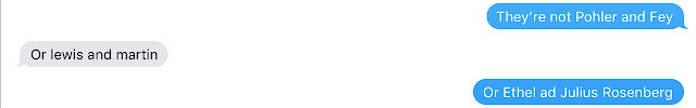 Our back and forth was good, but we've done better. We didn't have great material with which to work, though Mike certainly tried to jab me. And he called me - correctly - on wanting to beg off early and go to bed: "This is the time u start whining". It's true - the man knows me, and he's not even Prince.